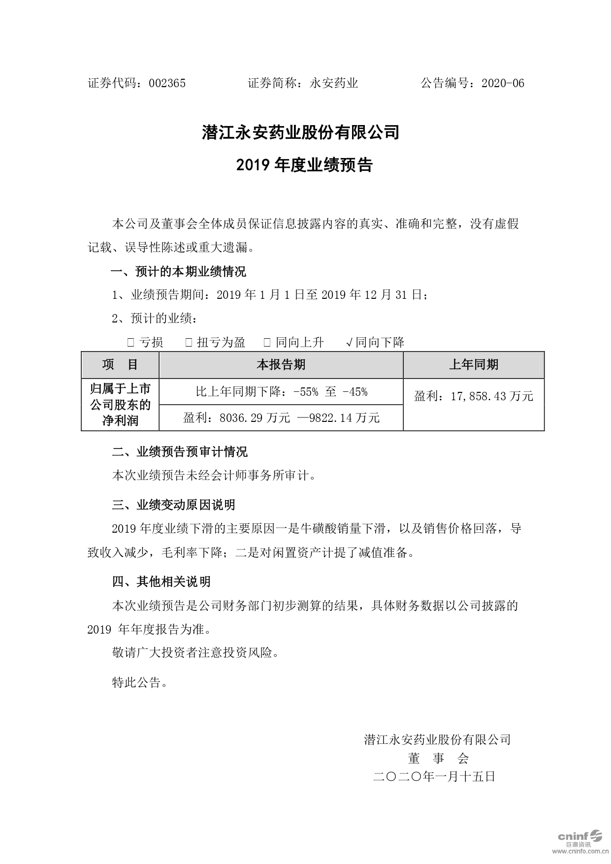 2019年度业绩预告