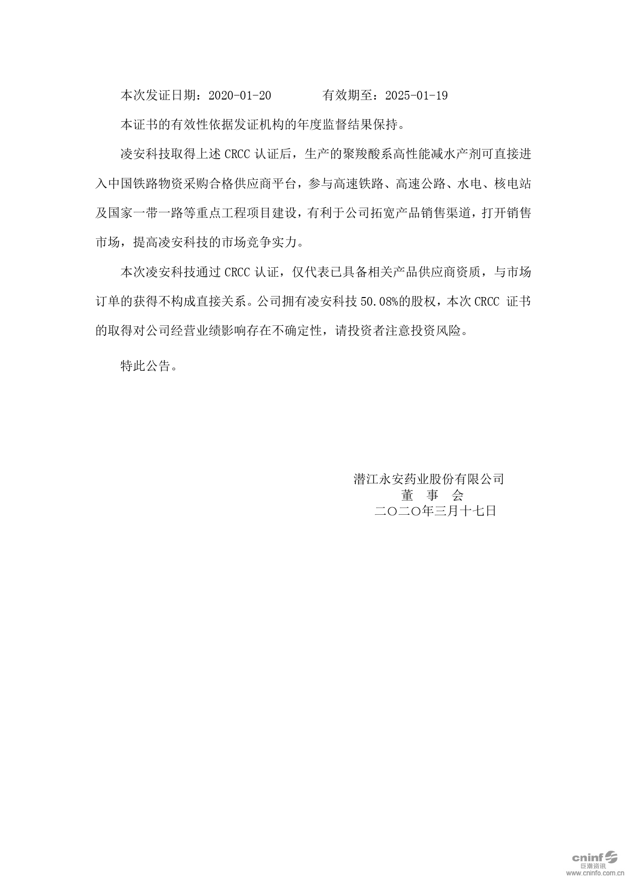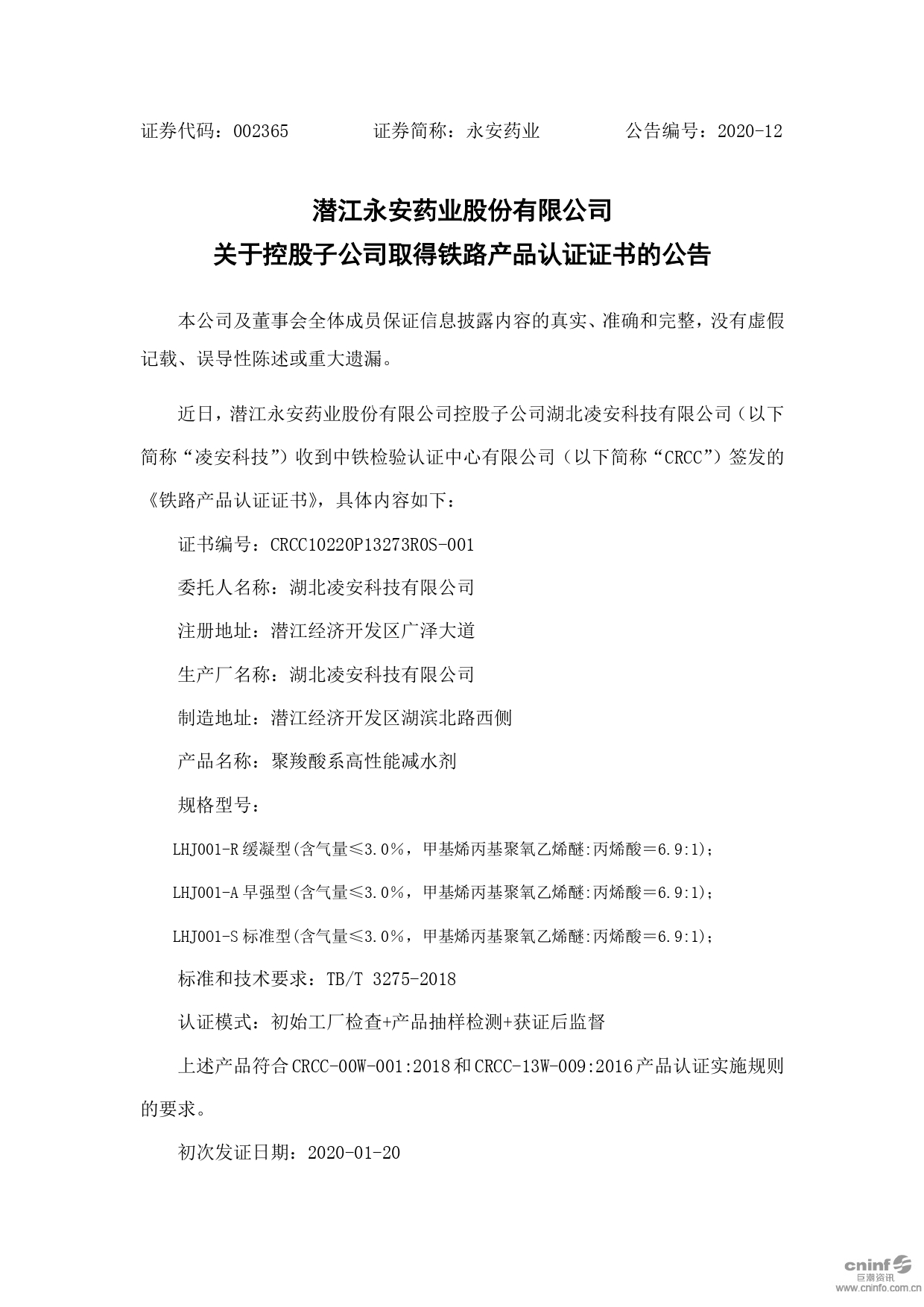 关于控股子公司取得铁路产品认证证书的公告