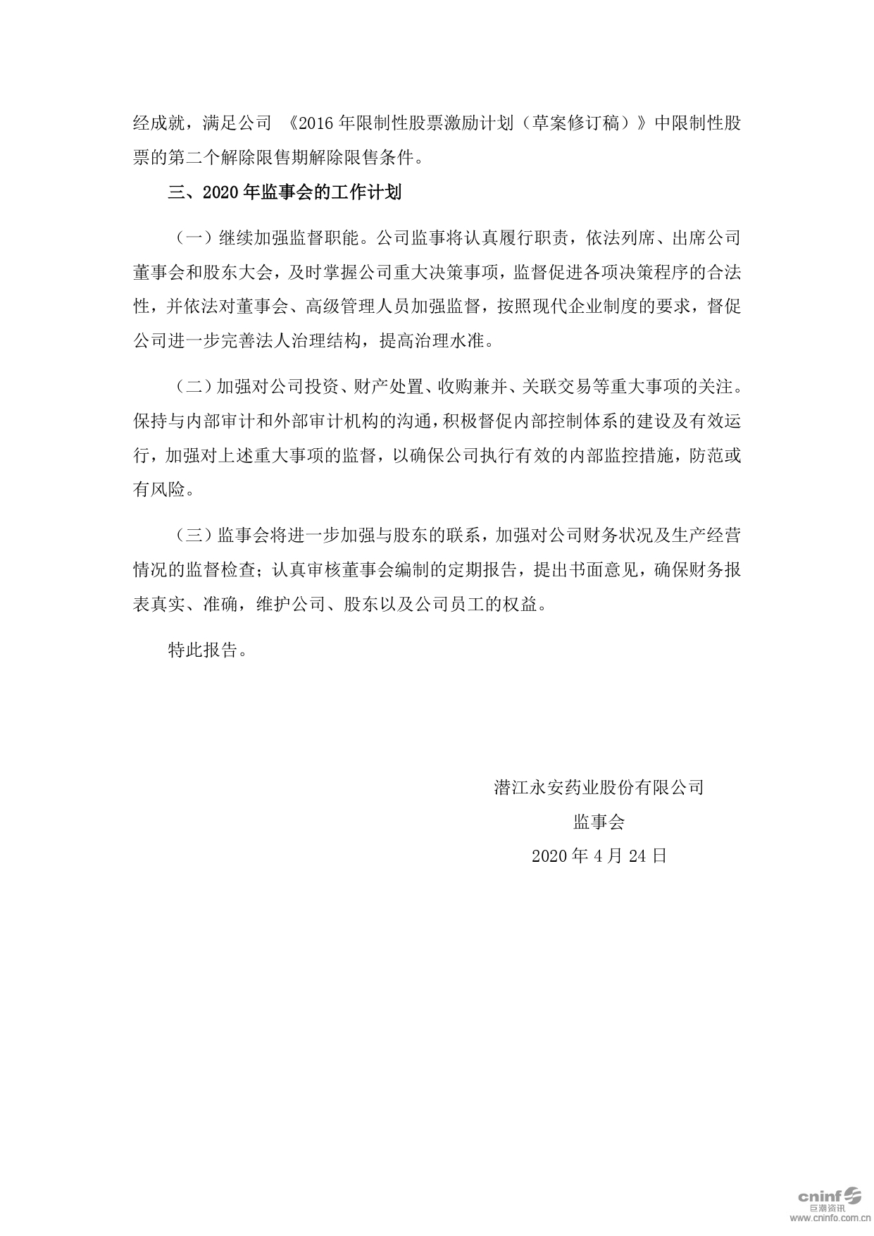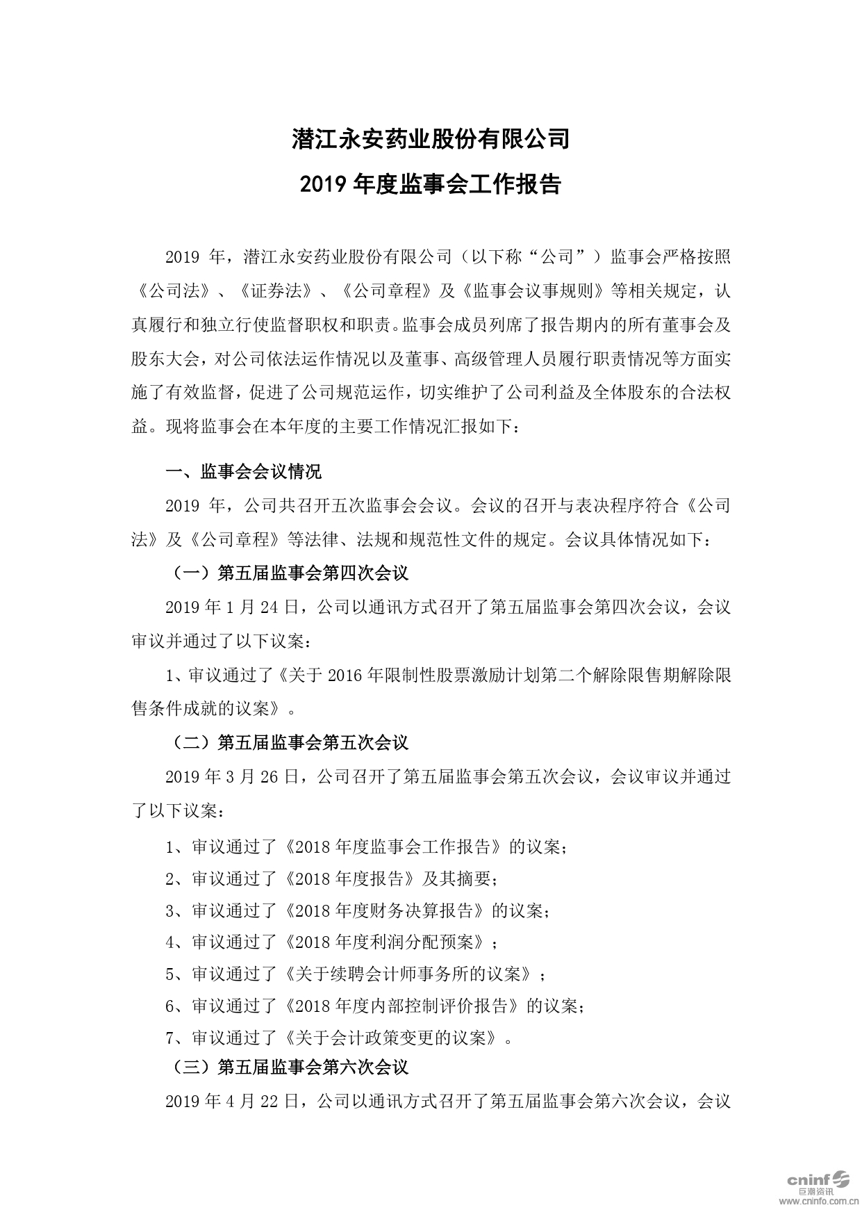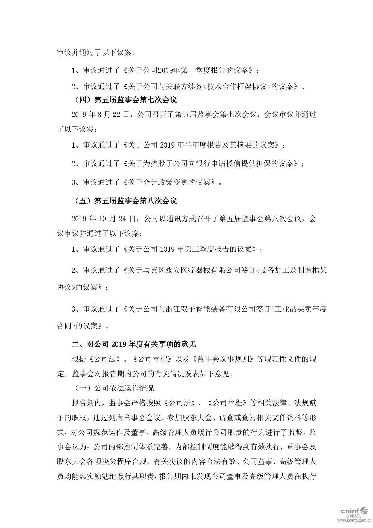 2019年度监事会工作报告