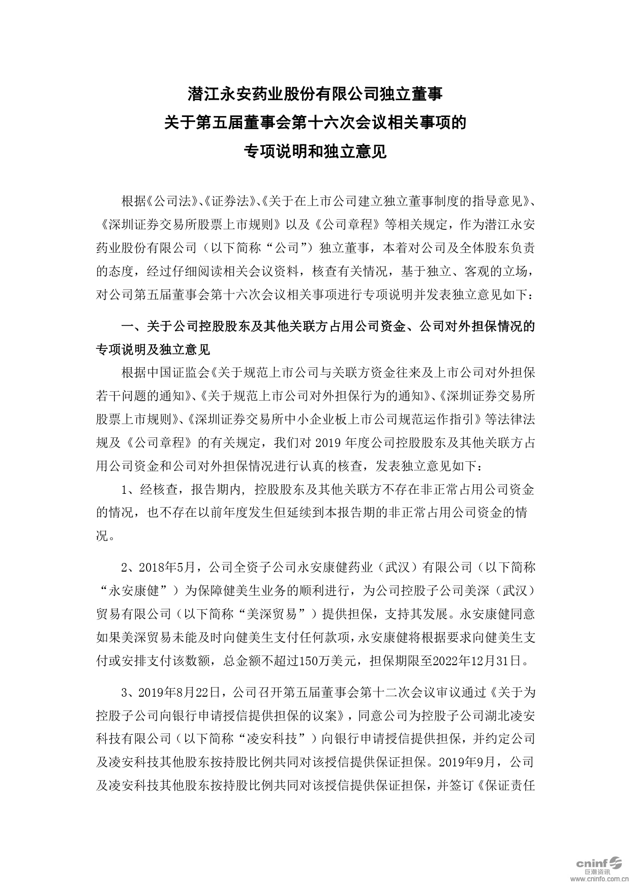 独立董事关于第五届董事会第十六次会议相关事项的专项说明和独立意见