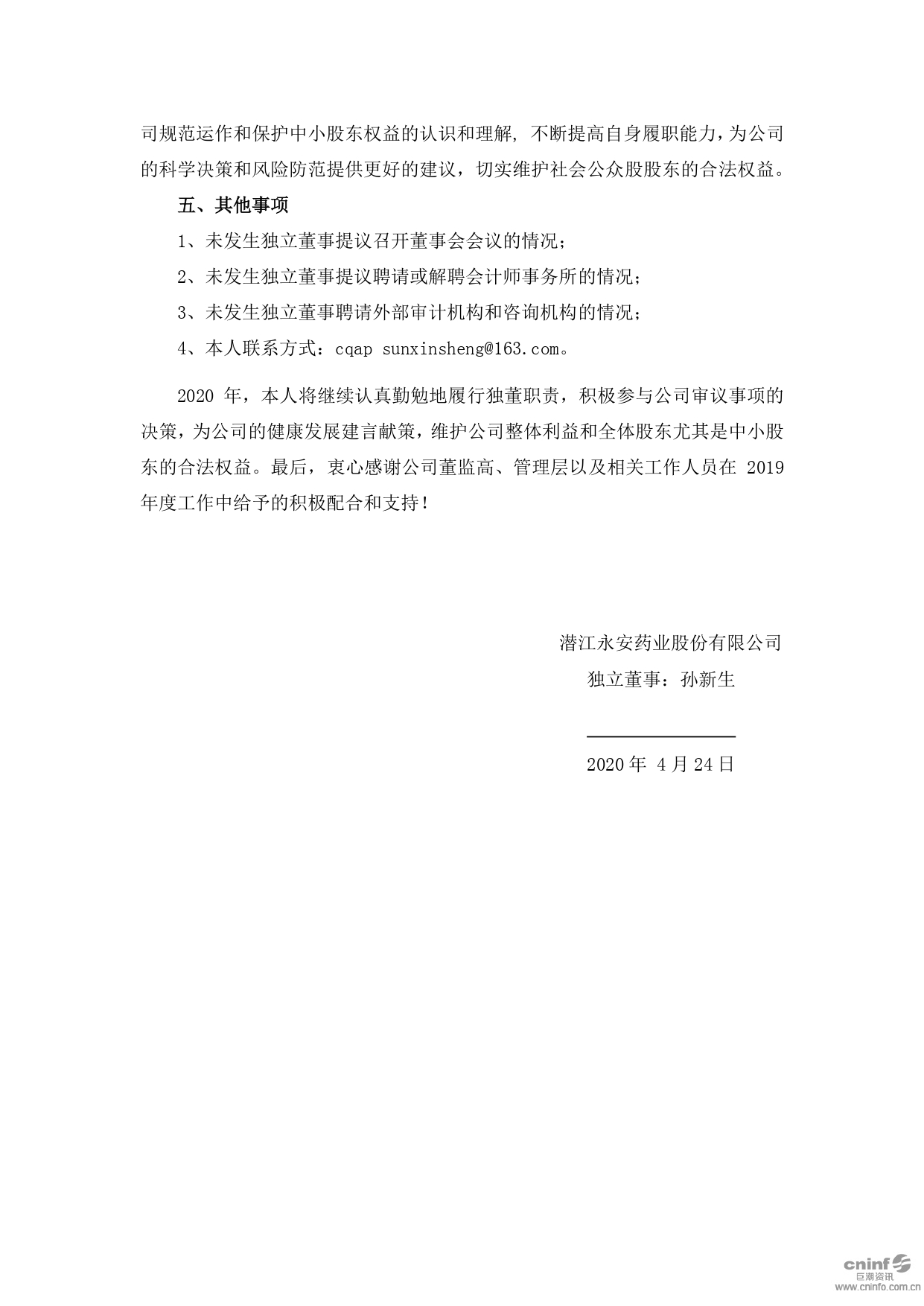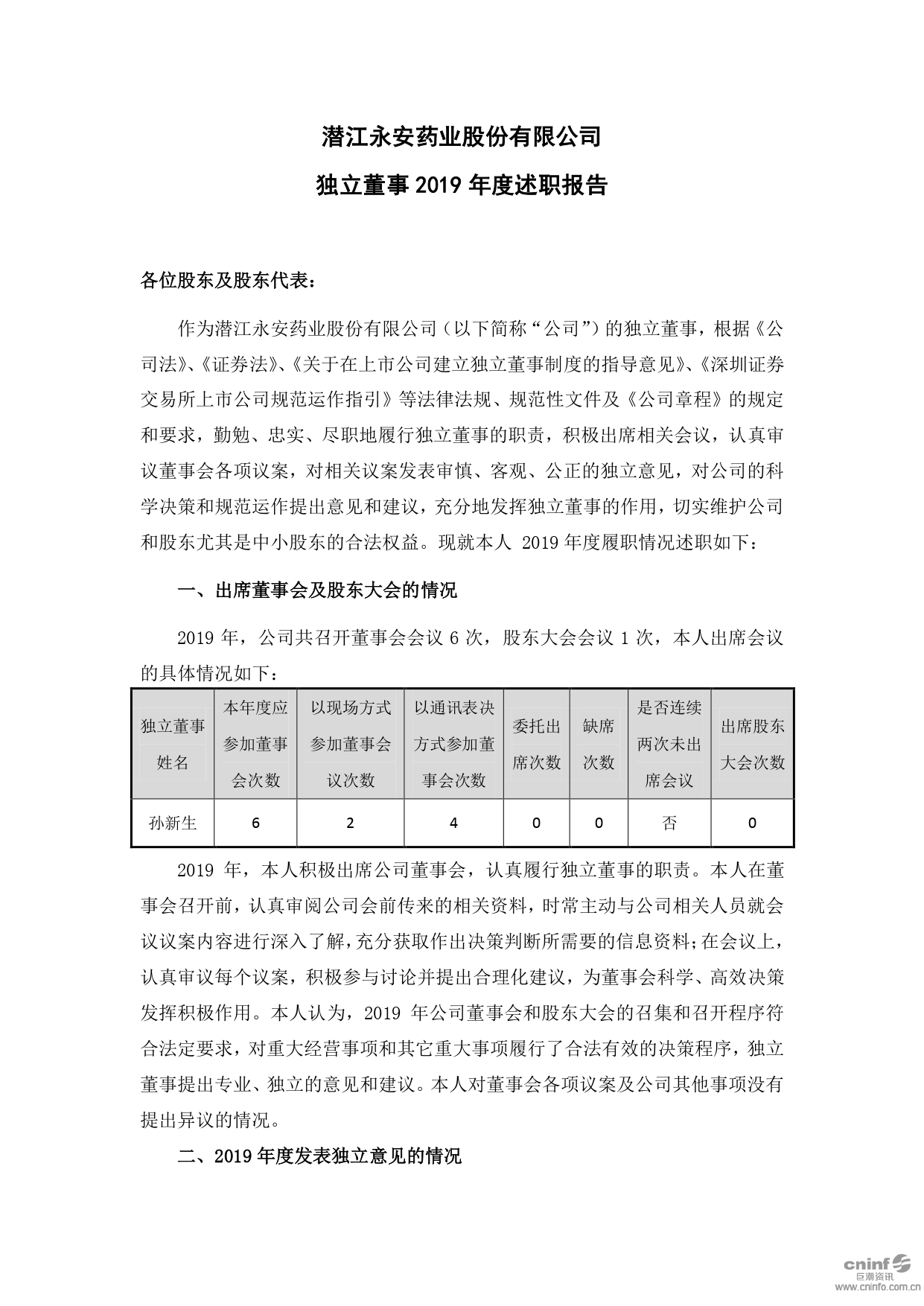 独立董事2019年度述职报告(孙新生)