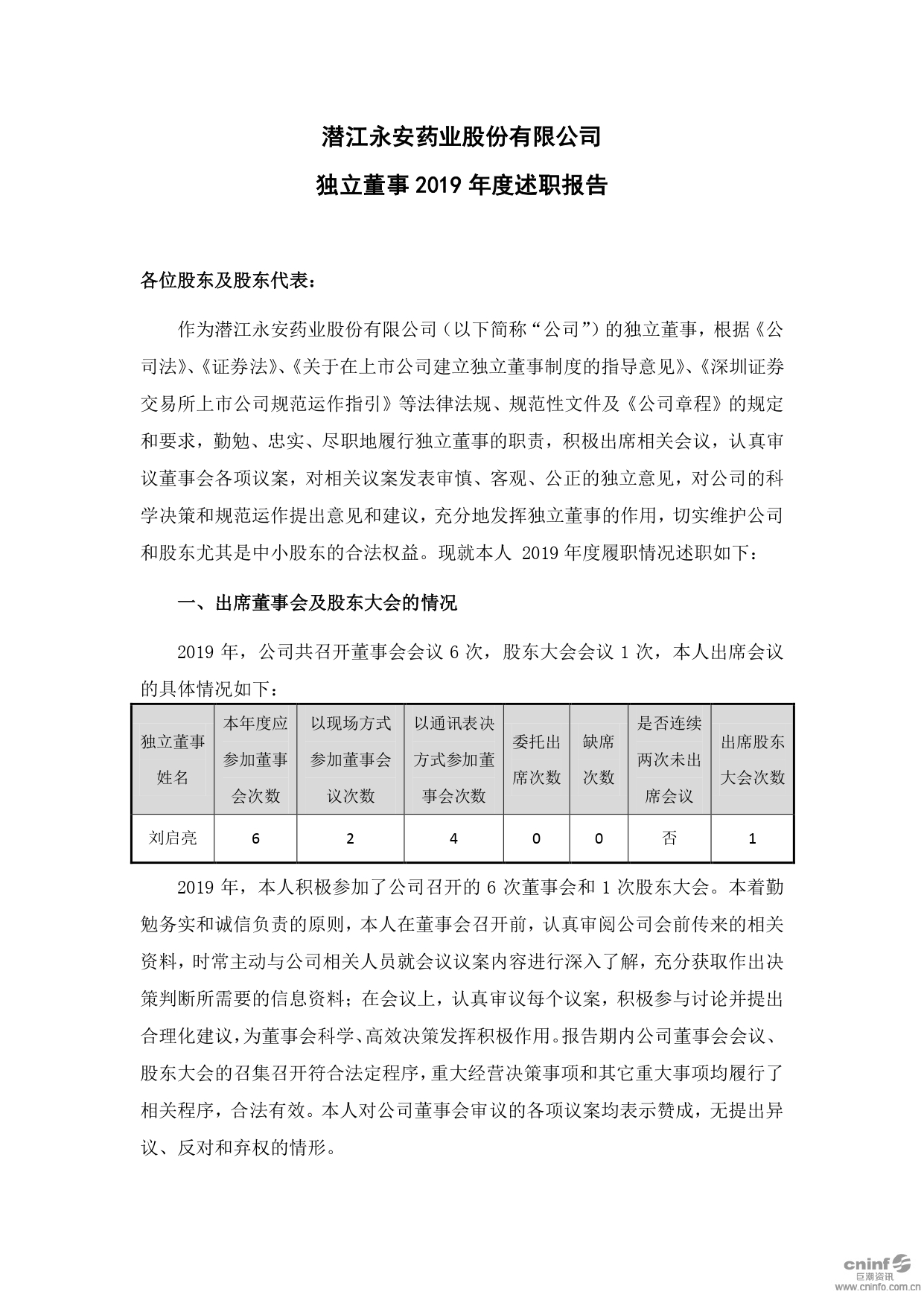 独立董事2019年度述职报告(刘启亮)