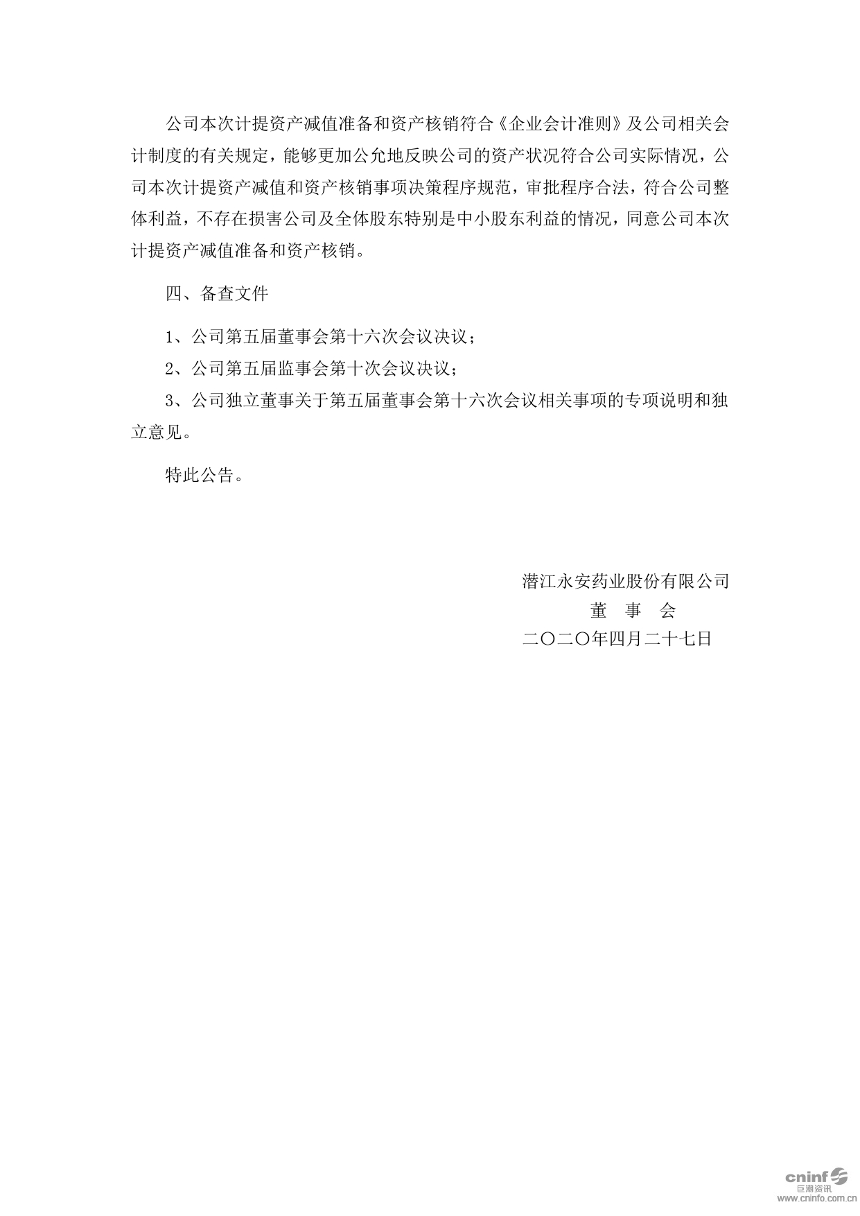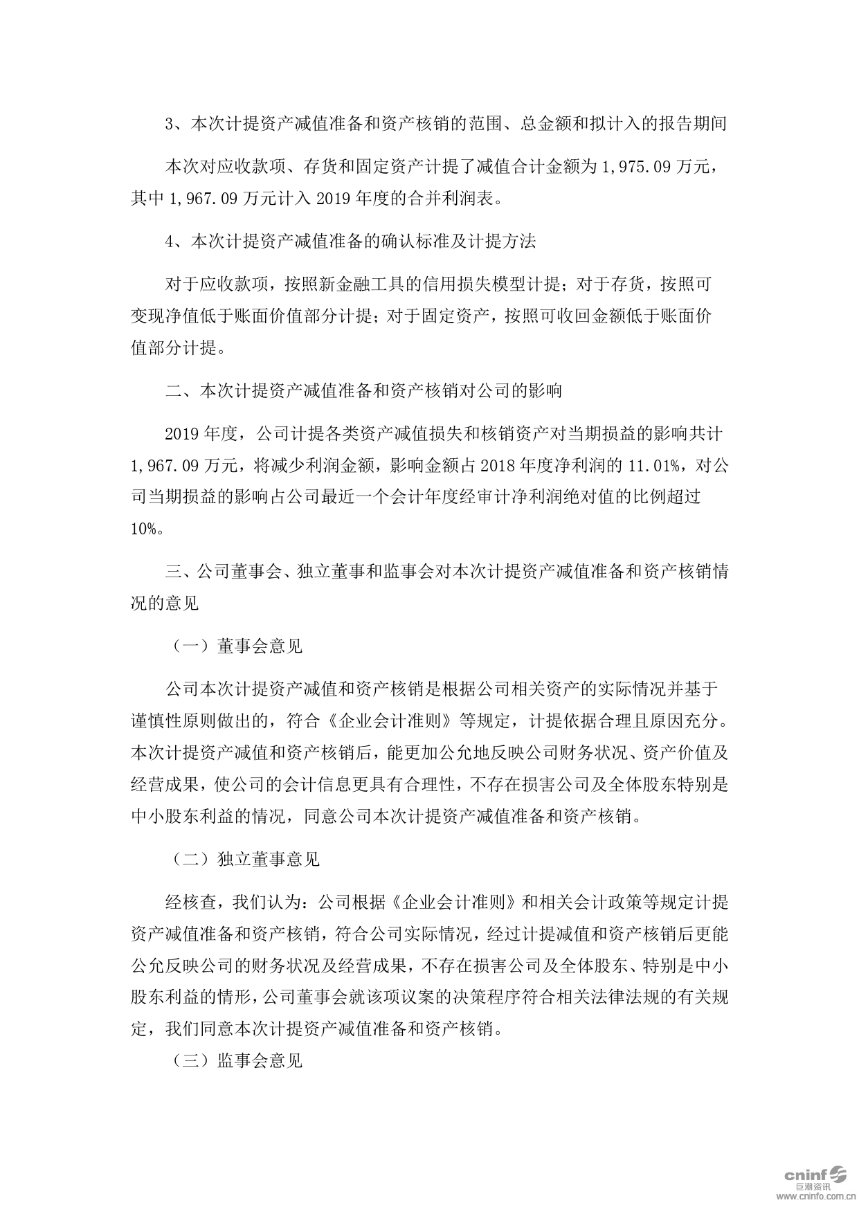 关于计提资产减值准备和资产核销的公告