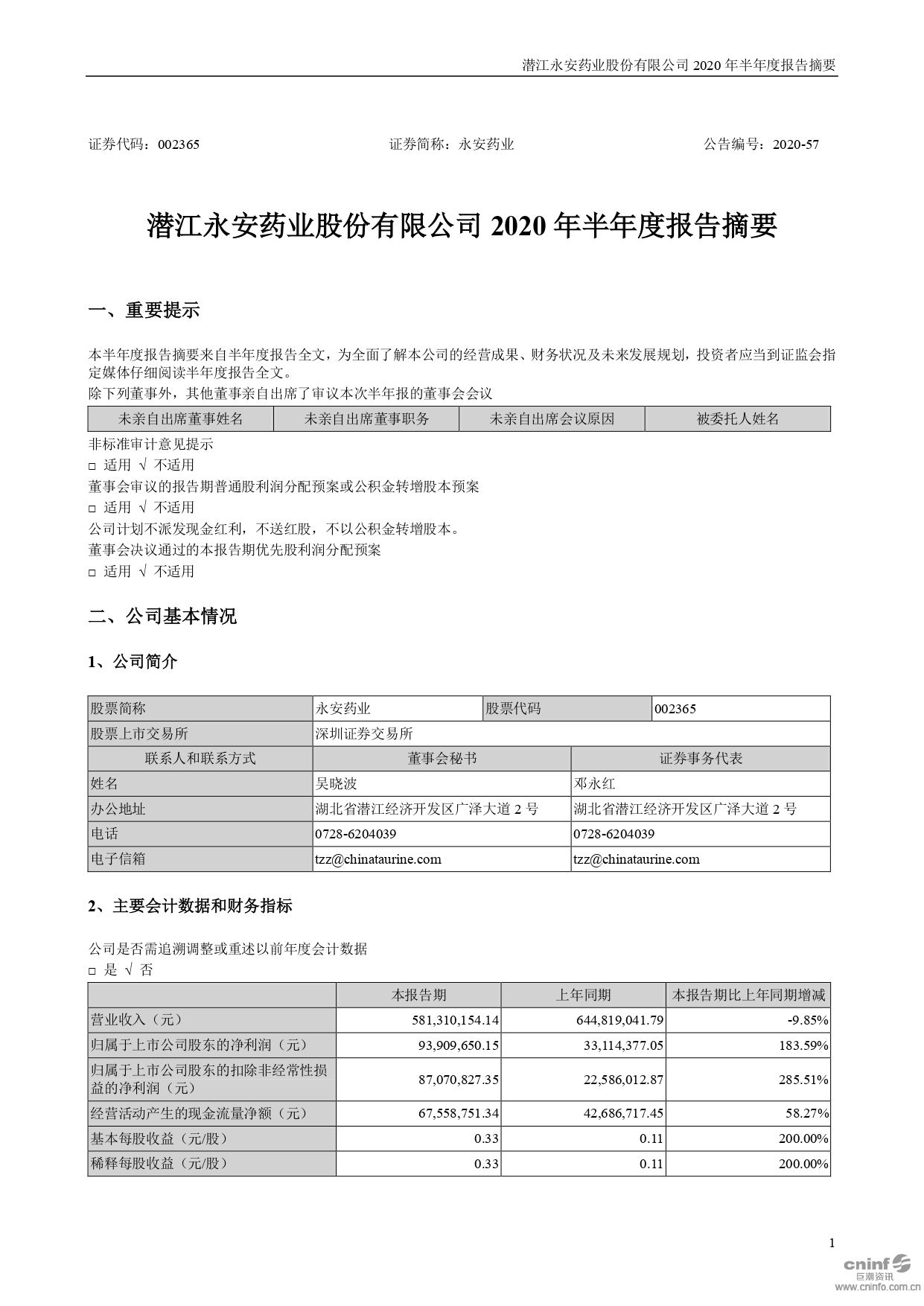 2020年半年度报告摘要