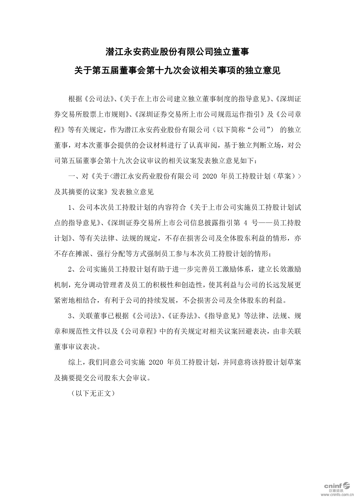 独立董事关于第五届董事会第十九次会议相关事项的独立意见