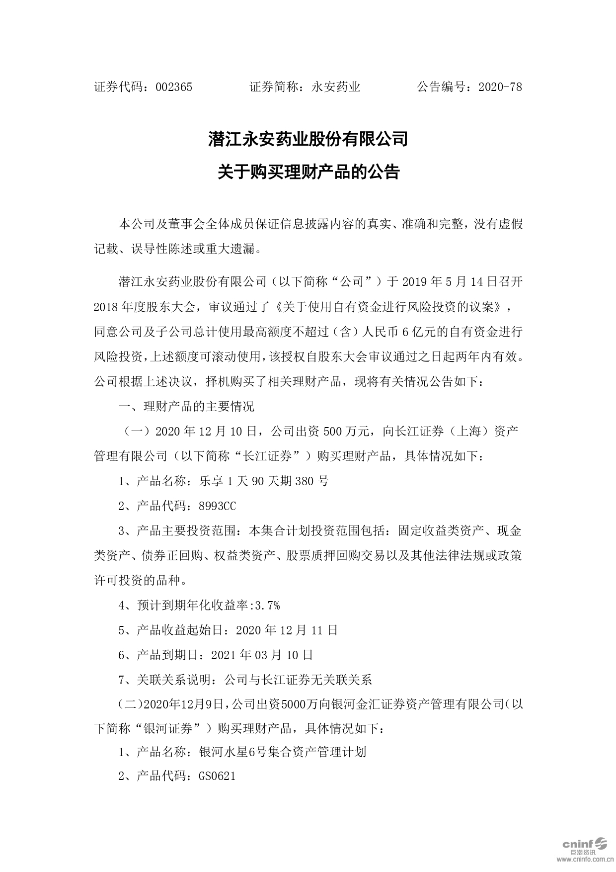 关于购买理财产品的公告