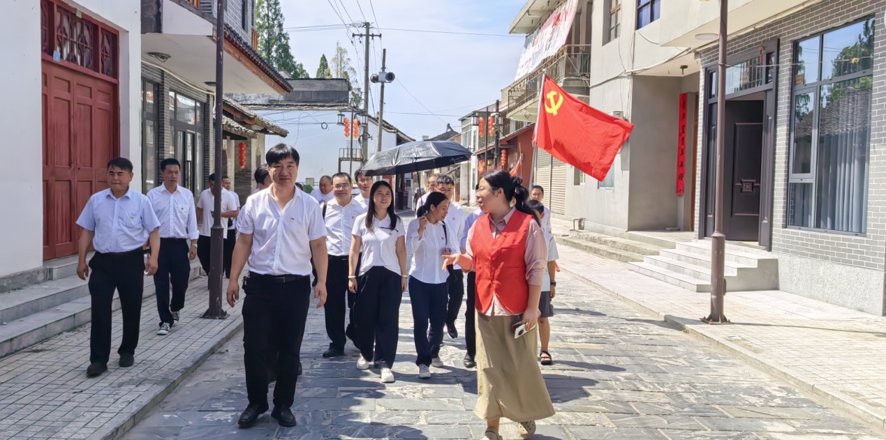 随后,队伍来到熊口镇红军街,追寻湘鄂西苏区的红色印记。1930年至1932年间,这里曾是湘鄂西苏区重要的军事指挥中心,红2军团部、红3军军部、红6军军部及多个师部先后驻扎于此,现存革命遗址多达34处。行走在古朴沧桑的街巷,触摸着斑驳的墙壁,党员们的思绪仿佛穿越时空,回到了那段烽火连天的岁月。简陋的居所、艰苦的环境,丝毫没有困住革命先辈追求光明的步伐,他们在此运筹帷幄、决胜千里,用“践行初心、担当使命”的实际行动,谱写了可歌可泣的英雄篇章。这份在逆境中依然坚定信念、夺取胜利的革命意志,令大家肃然起敬。