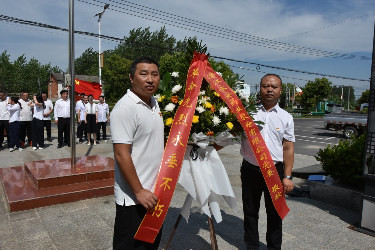 在庄严肃穆的刘赤生烈士纪念馆广场,全体党员列队肃立,向烈士敬献花篮,深切表达对革命先辈的崇高敬意和无尽哀思。面对鲜红的党旗,公司党委书记彭波同志带领大家庄严地重温入党誓词,铿锵誓言在广场上空回荡,昭示着永葆初心、勇担使命的坚定信念。